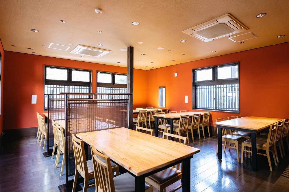 窓からあかりがこぼれる夜の雰囲気もまた一興。ぜひ、昼夜ともにご利用ください。