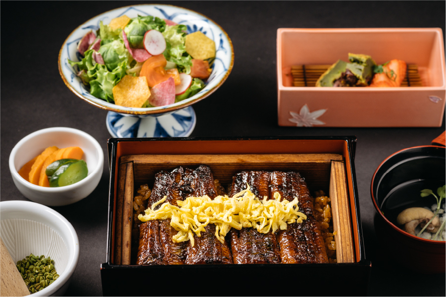 創業以来、改良を重ね、こだわり抜いた門外不出のオリジナルの秘伝のたれ。日本料理の経験を生かし、甘めの熊本醤油に数種類の砂糖をブレンドし、じっくり炊き上げています。脂の乗った鰻に負けない、濃厚で旨味たっぷりの秘伝の甘辛いたれをご堪能いただけます。